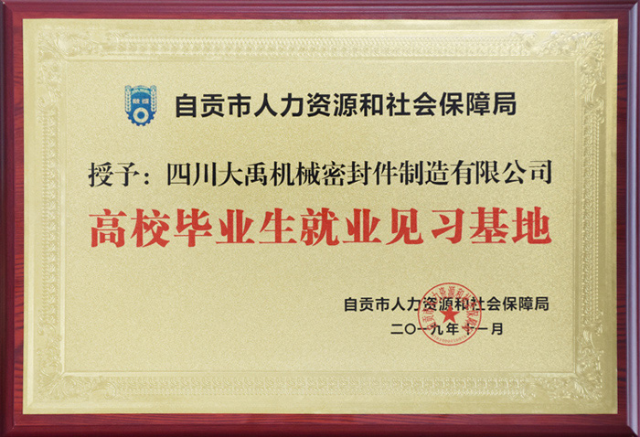?????? ?2019年11月,經(jīng)自貢市人力資源和社會保障局驗收評定,四川大禹機械密封件制造有限公司成功評定“自貢市高校畢業(yè)生就業(yè)見習基地”。