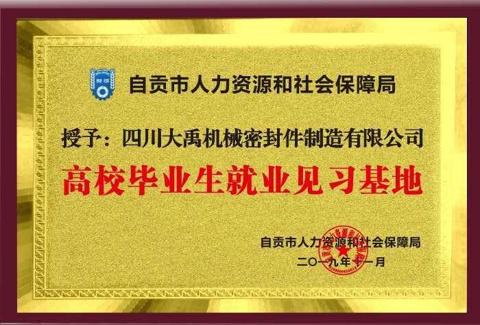 2019年11月,四川大禹機械密封件制造有限公司榮獲“自貢市高校畢業(yè)生就業(yè)見習基地”稱號。