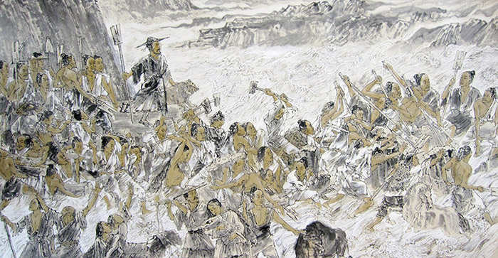四千年前的上古之時,天降洪水,席卷大地,生靈涂炭。危急之時,一位英雄挺身而出,帶領天下民眾,經(jīng)歷十三年的艱苦努力,終于治水成功,禍害人間的洪水被用于灌溉農(nóng)田,人民安居樂業(yè)。人們將這位英雄尊稱為“大禹”。